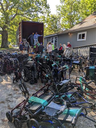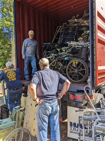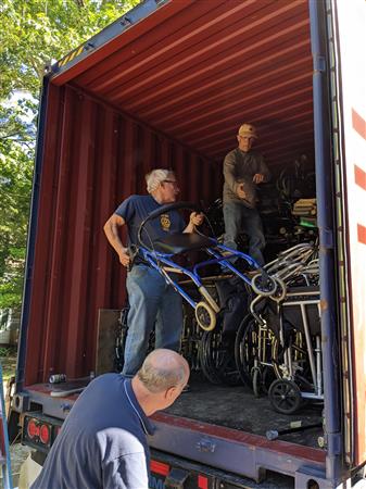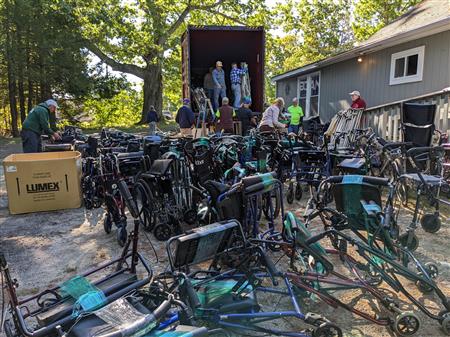 Pictures from Old Orchard Beach Maine, Saturday September 24, 2022. Approximately 20 Rotarians representing 9 clubs in District 7780 spent several hours loading a container of mobility devices destined for Nigeria.