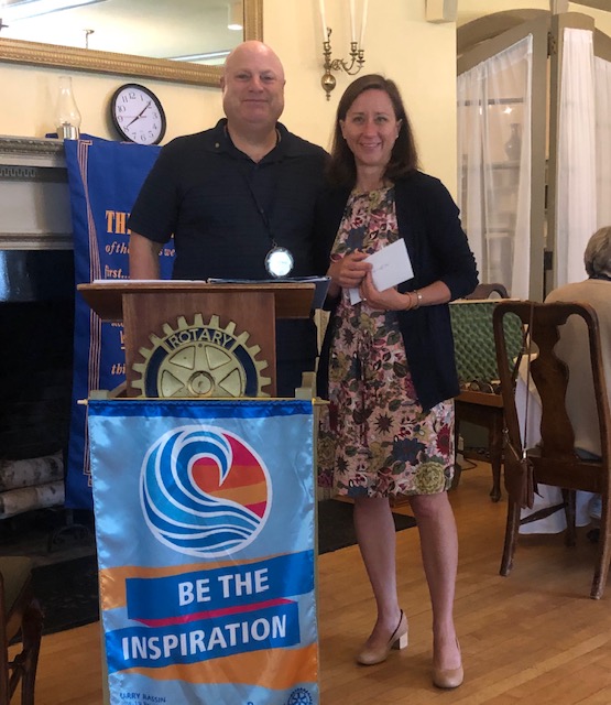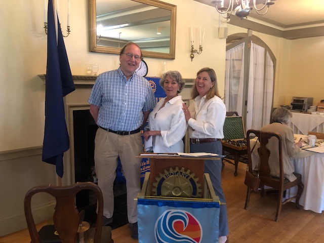 Our club made a donation to the Bethel Library’s summer youth reading program. Rotarian Jean Benedict (right), is pictured with the librarian Michele Conroy and their board President Tom Davis.