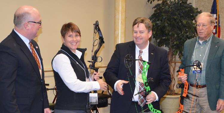 A “Gift Compound Bows” presentation of a tricycle was made to the Veterans Adaptive Sports and Training (VAST) by Larry Gross, a Rotarian and Chief Executive Officer of the Southern Maine Agency on Aging, the agency that generously supported the special donation.