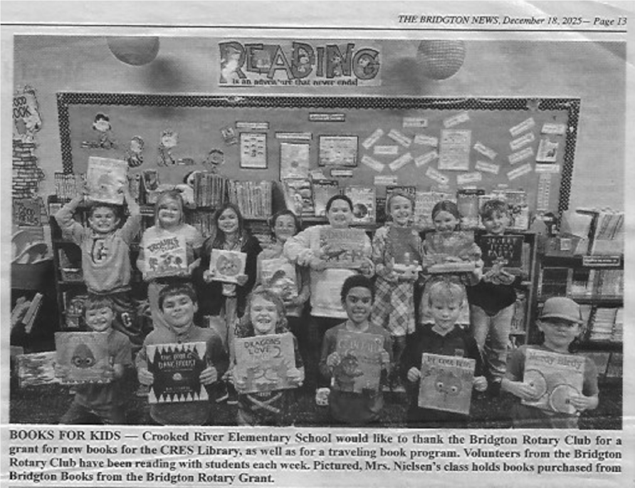 District 7780 awarded a district grant to the Bridgton-Lake Region Rotary Club to support literacy. With this grant the club is supporting struggling readers at Crooked River Elementary School through its “Supporting Literacy at CRES” initiative. The project provides both high‑interest books and one‑on‑one volunteer support to help children strengthen essential reading skills. A 2025 National Assessment of Educational Progress (NAEP) report underscored the urgency of this work, noting that national reading scores have fallen to a 30‑year low, with only one‑third of 12th graders demonstrating basic proficiency.