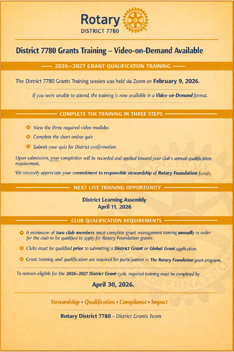 Rotary District 7780 will be sponsoring a